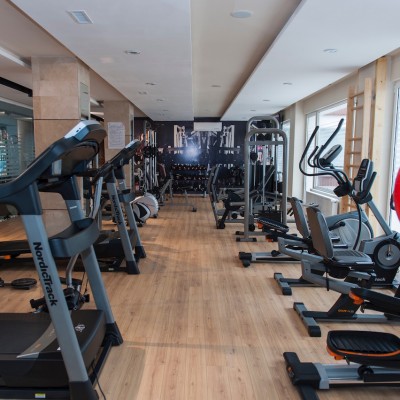 Paseste in zona de sport unde ai la dispozitie aparate de fitness gandite pentru intretinere si recuperare, biciclete eliptice, orizontale si verticale, benzi de alergat, prese si aparate multifunctionale de tip BioForce, zona de aerobic si kineto.