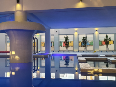 Vei regasi aici masaje subacvale pentru toate zonele corporale, alveole dinamice adaptate pentru diferite inaltimi, cascade de apa si masaj cervical, gheizere, culoare de inot, paturi de masaj, spirale de jeturi si culoare de mers contra curent.