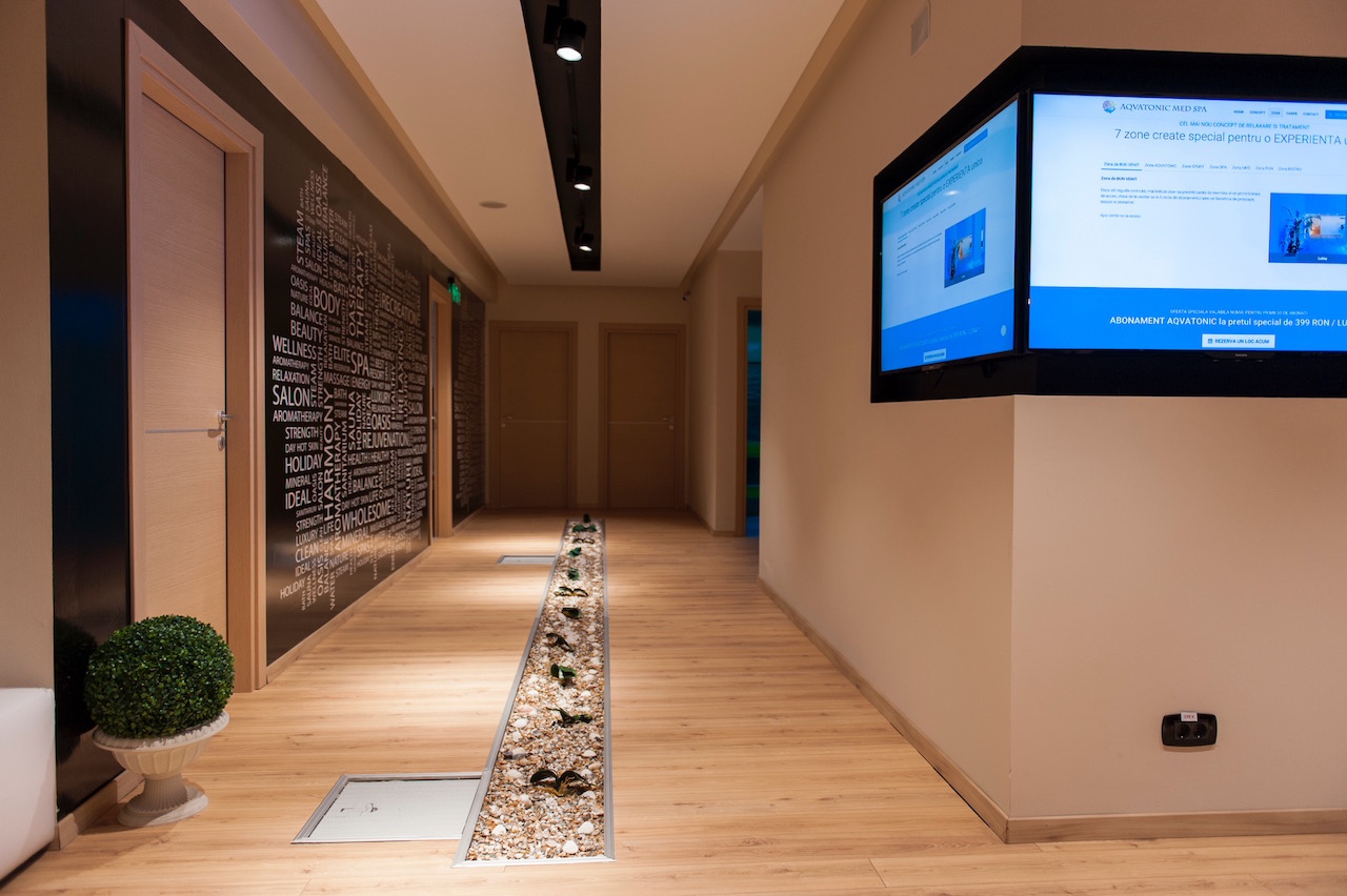Inaugurat în decembrie 2015, ne mandrim cu singurul bazin cu labirint AQVATONIC din Europa de Est ce incorporează 16 zone specifice de masaj acval și subacval cu temperaturi cuprinse între 28 și 34 de grade care vine în completarea terapiilor balneare tradiționale cu apă sărată și nămol sapropelic din Lacul Techirgiol, procedurilor inovatoare cu laser, ultrasunete, unde magnetice sau terapiilor speciale de masajefectuate de terapeuți de renume cu o experiență îndelungată.