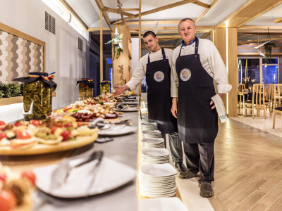 Ne bucuram sa va putem oferi un mic dejun copios in sistem open buffet (în zilele cu peste 30 de persoane la mic dejun) cu o larga selecție de preparate, băuturi, cafea si fructe.