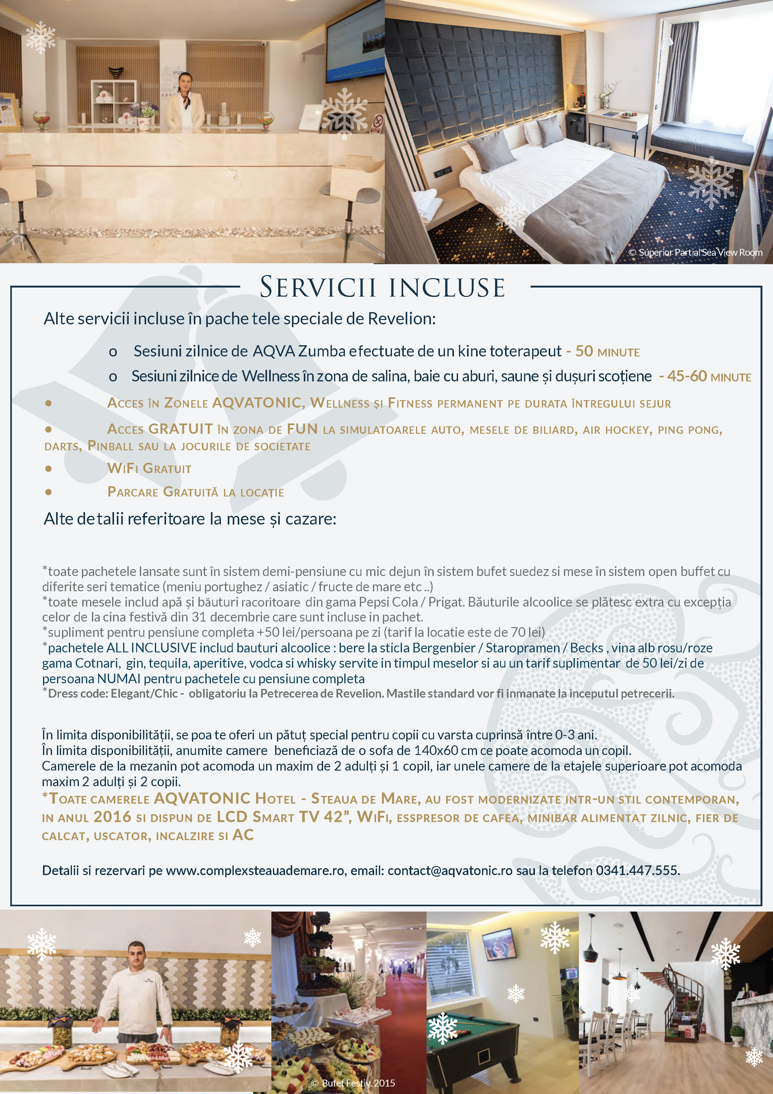 - Masaje subacvale, clase de AqvaGYM si SPA bonus conform detaliilor de la finalul brosurii.